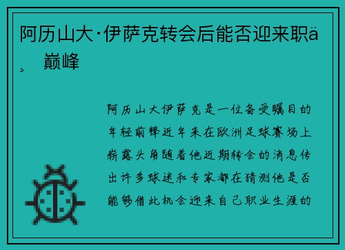 阿历山大·伊萨克转会后能否迎来职业巅峰